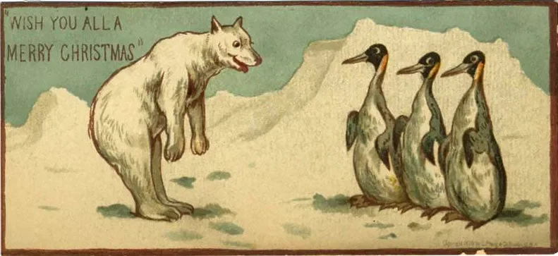 Prang, L. (1879). Christmas Greeting Card – Polar Bear and Penguins [Illustration]. Germanisches National Museum. http://objektkatalog.gnm.de/objekt/HB16495.